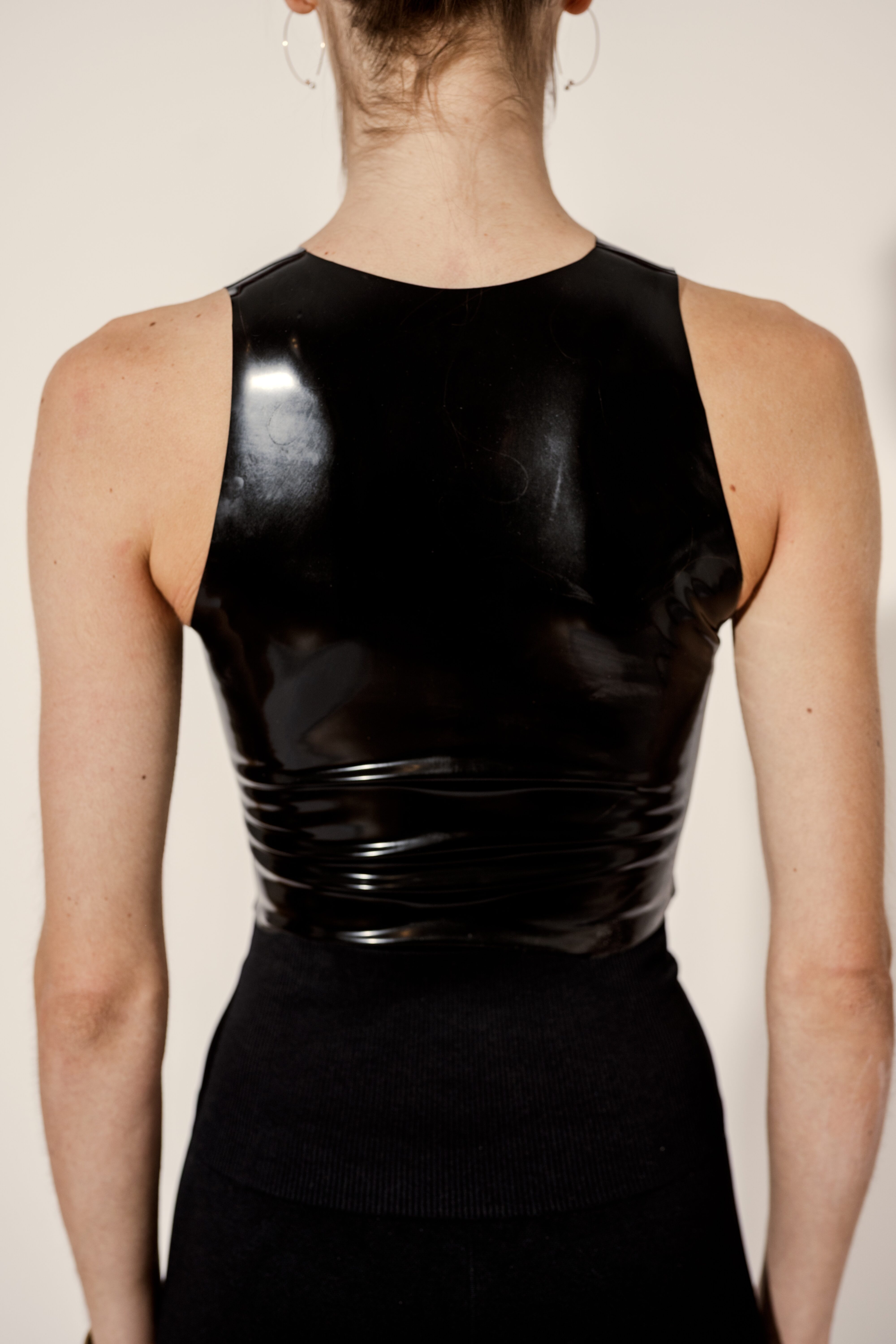 Dieses ärmellose Latex-Crop-Top endet oberhalb der Taille und besticht durch seinen Reißverschluss. Der kurze Frontreißverschluss ermöglicht zudem ein variables Dekolleté. Die Frontnähte verbessern die Passform und sorgen für eine besser geformte Silhouette.