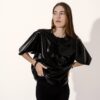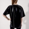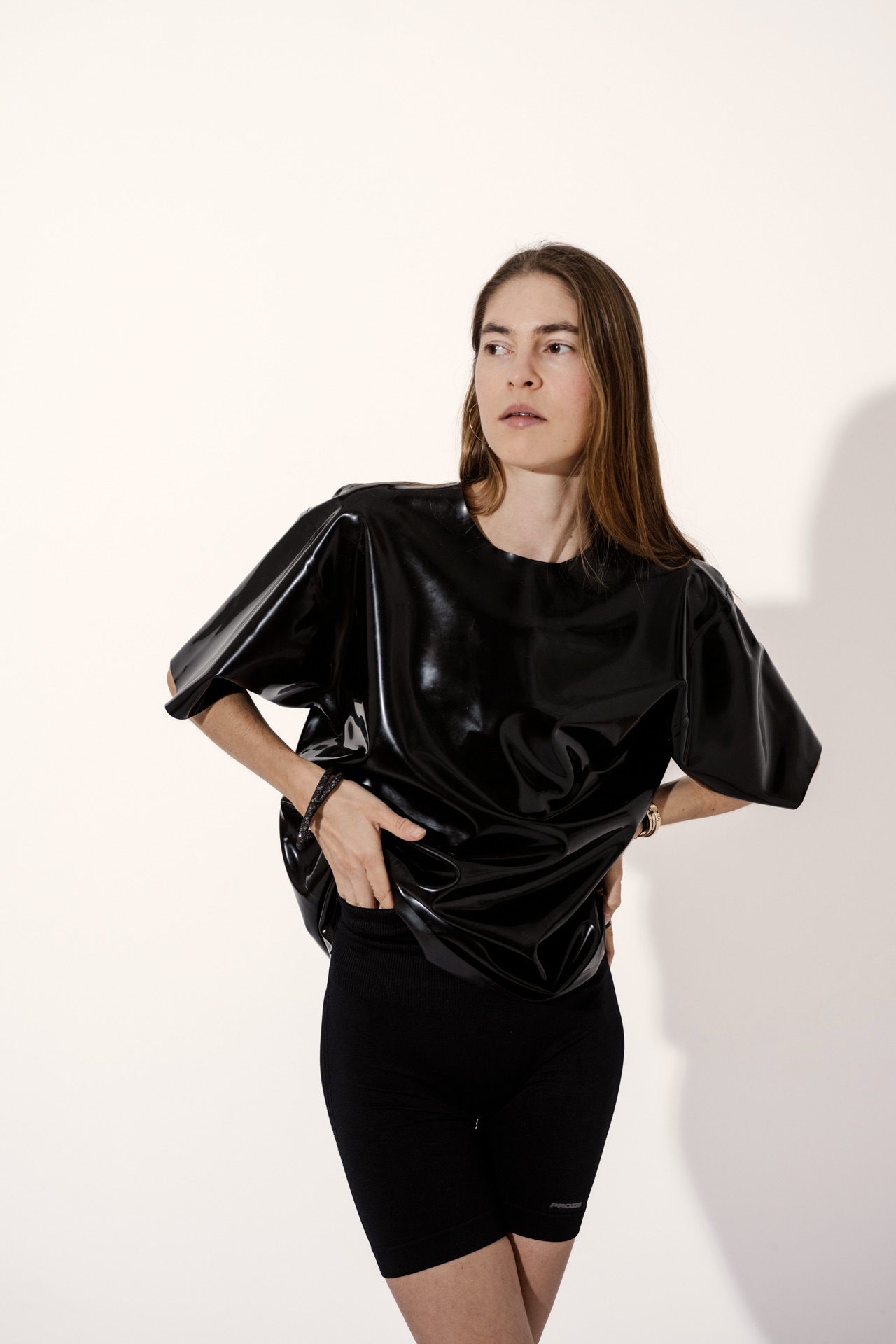 Ein lockeres, oversized T-Shirt mit geradem Schnitt und ausgestellter Schulterpartie. Weiche Struktur, markante Präsenz.
