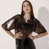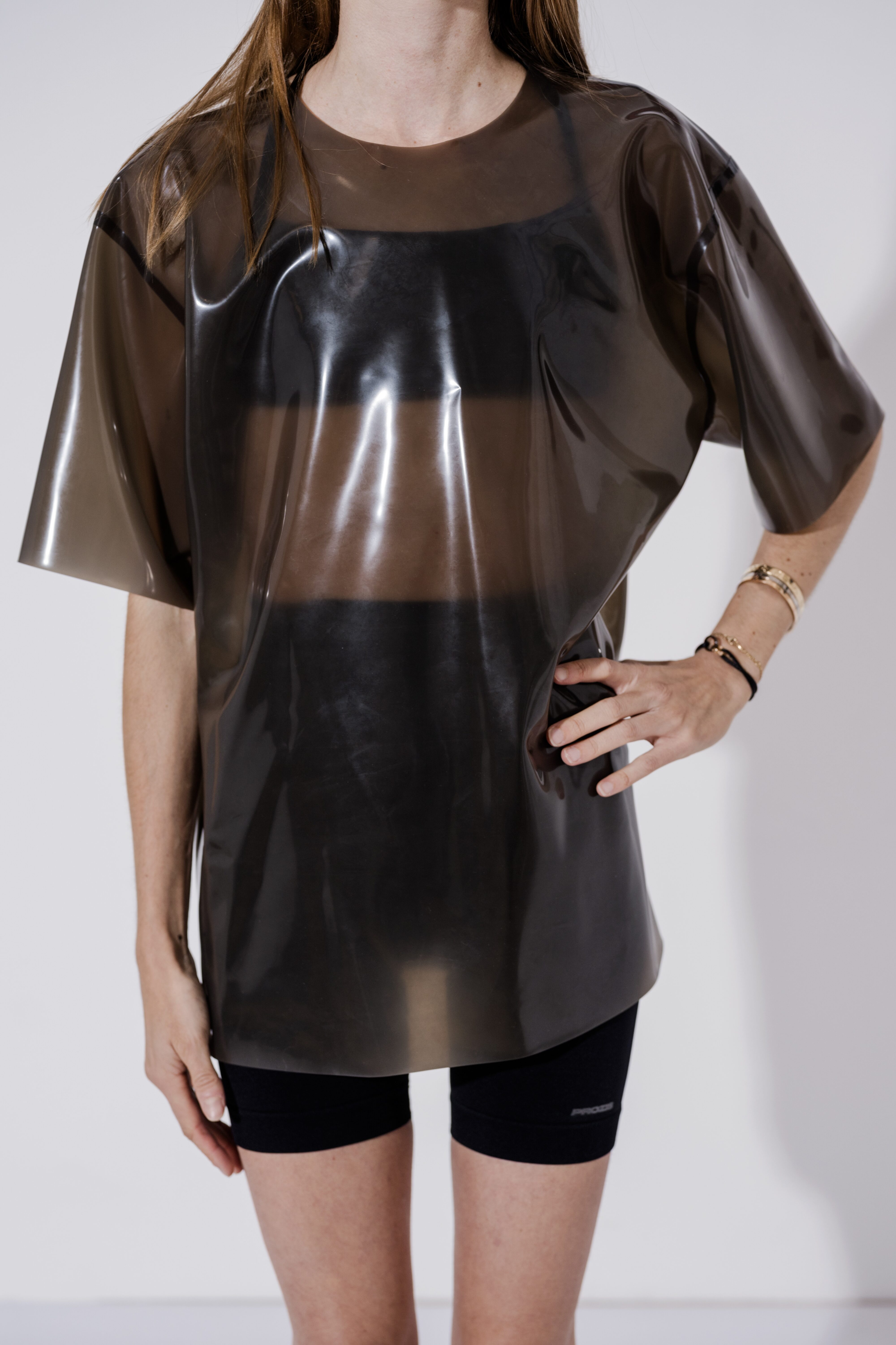 Ein lockeres, oversized T-Shirt mit geradem Schnitt und ausgestellter Schulterpartie. Weiche Struktur, markante Präsenz.