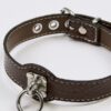 Handcrafted classic choker made from high-quality Italian croc-embossed leather in chocolate brown with stainless steel ring.